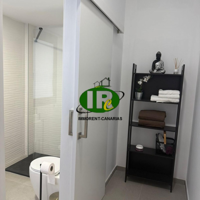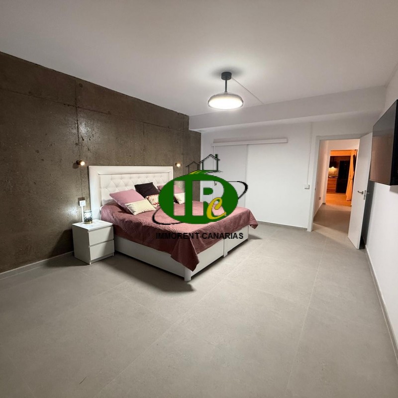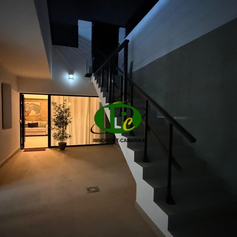 Schoner neu renovierter Hausteil mit 1 Schlafzimmer und 2 Terrassen. Wohnbereich mit L-Schlaf- Sofa, Aircondition, TV und großen Fenstern und Zugang zu einer offenen kleinen Terrasse, die auch zum Ausgang über eine Treppe führt. Amerikanische Küche mit Waschmaschine, Ceranherd, kleiner Geschirrspüler, Microwelle, Esstresen. Großer Kühlschrank. Duschbad. Schlafzimmer mit Doppelbett, TV und Zugang zu extra Raum, den man zum Beispiel als Ankleidezimmer nutzen könnte, oder auch anders. Schreibtisch und Kleiderschrank. Zugang zur 2. Terrasse mit Kunstrasen, ummauert, nicht einsehbar, mit Terrassenmöbeln und großen Sonnenschirm.
