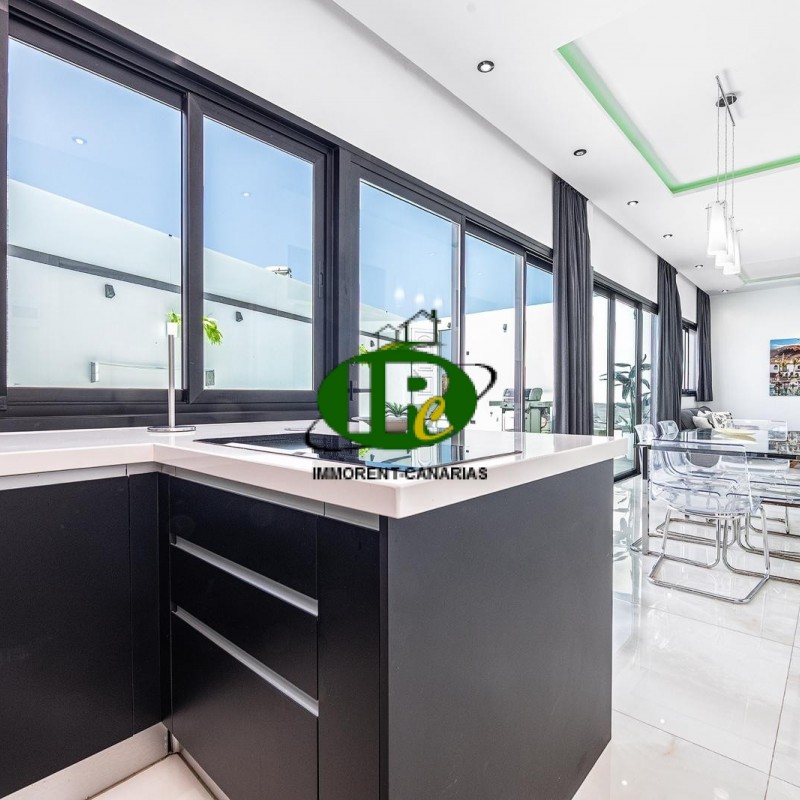 Preciosa propiedad con 2 dormitorios, vestidor y piscina privada. Ubicación: no en pleno centro de Meloneras, pero en una zona tranquila, aunque cerca de la playa y del paseo marítimo de Meloneras (a solo 5 minutos en coche). Zona tranquila con aparcamiento en la calle. La casa es totalmente privada. Zona de piscina con tumbonas, muebles de exterior y barbacoa. Luminoso salón con grandes ventanales, un amplio sofá, aire acondicionado y una gran televisión. Mesa de comedor para 6 personas. Cocina americana de alta calidad con horno, vitrocerámica, microondas, lavavajillas y frigorífico grande. Baño con ducha luminoso. Ambos dormitorios disponen de aire acondicionado y camas dobles.