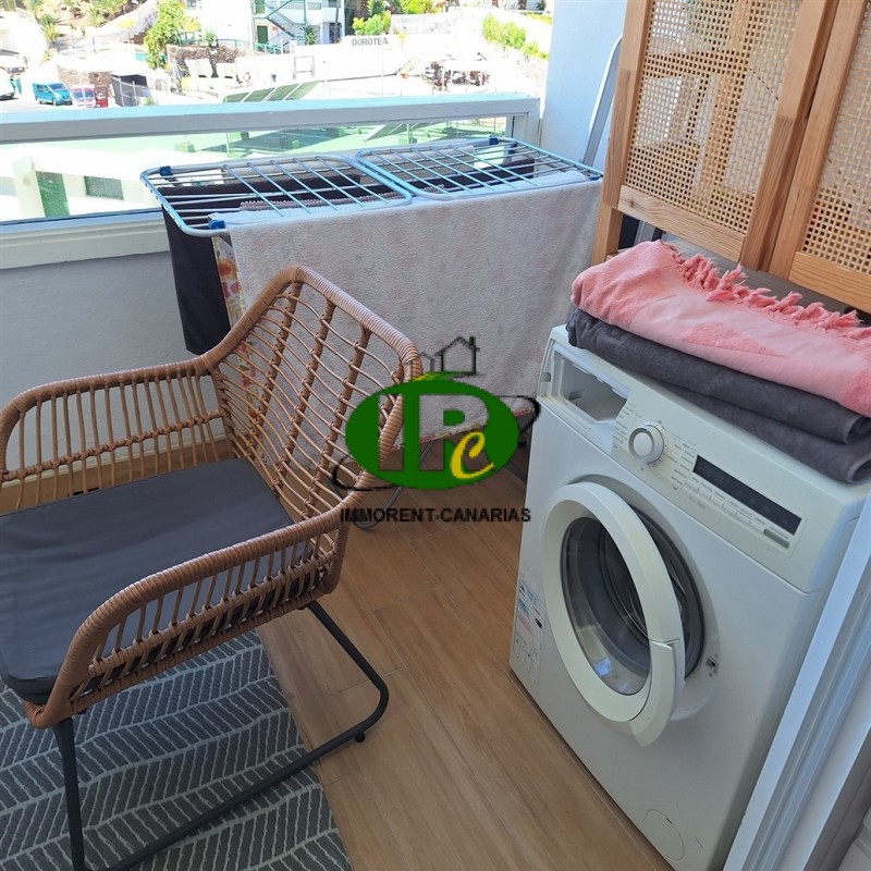 Apartamento estudio vacacional en la planta 5. Sala de estar con cama doble, TV con canales internacionales, mesa de comedor y balcón con zona de estar. Vistas a la piscina comunitaria. Ascensor. Lavadora. Pequeña cocina con nevera grande, placa de 2 fuegos y microondas. Baño con ducha. Ubicación céntrica, a solo 7 minutos a pie de la playa principal. Restaurantes y tiendas en las inmediaciones. Piscina comunitaria.